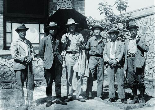 1934年5月,裴文中、李四光、德日進(jìn)、卞美年、楊鐘健、巴爾博(從左至右)在北京周口店辦事處的院子里。