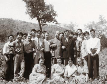 1956年,侯德封(正中)與葉連?。ㄗ笕┑戎刑K科學(xué)家在小興安嶺錳鐵礦區(qū)考察